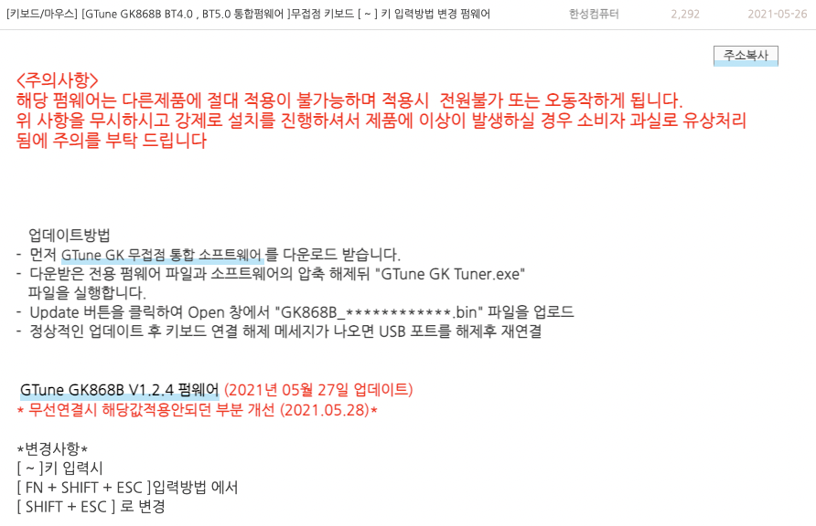 *21년 5월 펌웨어 업데이트를 통해서